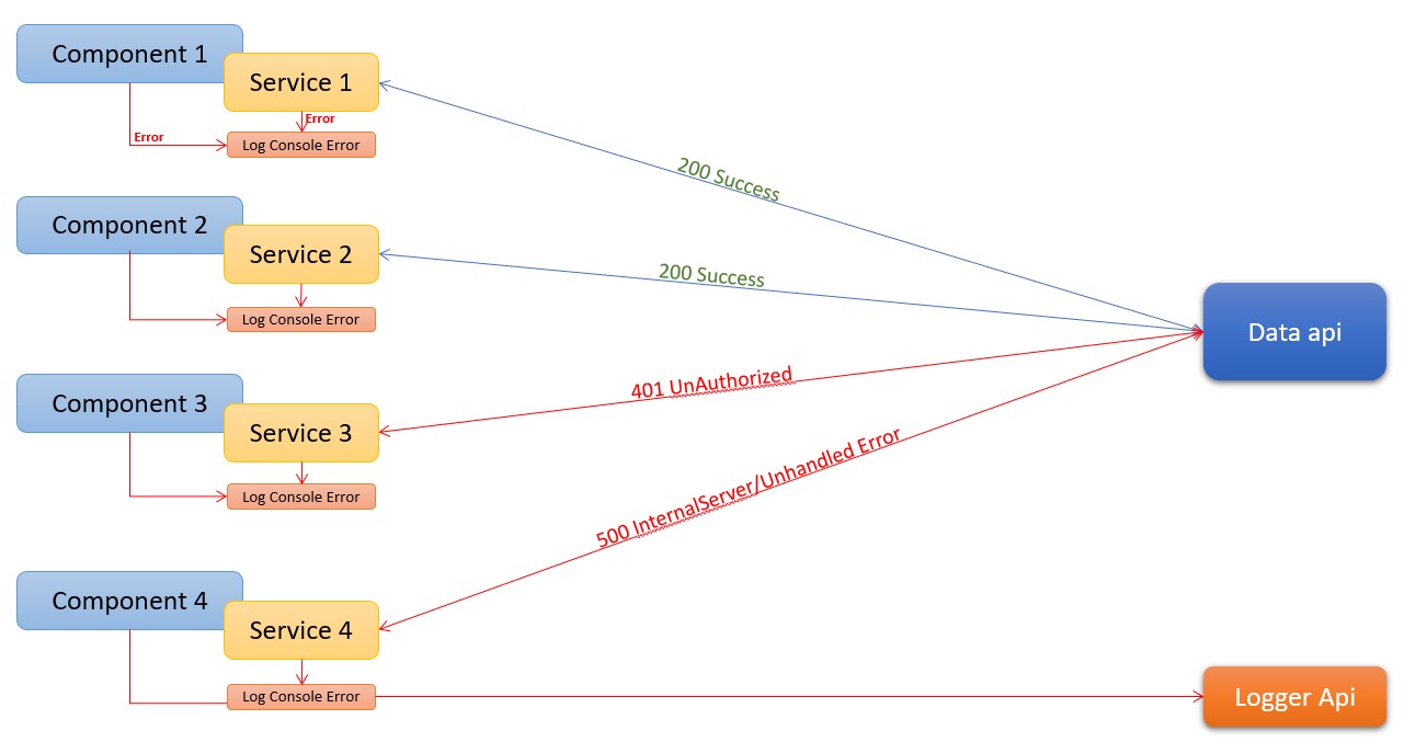 The below diagram illustrates this approach, see how the component and services are logging the errors on Client & Server side.