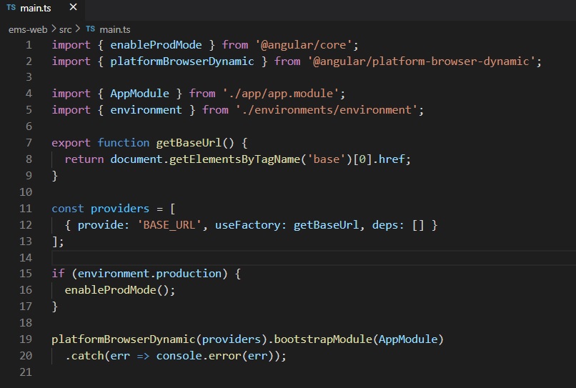 But this is a different approach, we will update the main.ts file so that it will automatically update the base URL in environment.ts. Even if we happened to change the port in the API project, this will automatically work and avoid unnecessary confusion & code changes.