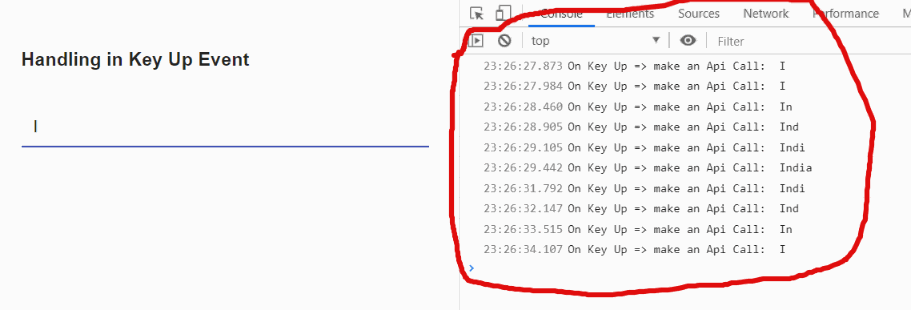 I hope you understand the problem now. In order to search the country India, the key up event has been raised 6 times, If the user mistypes and correcting it, then think how many API requests would have gone.