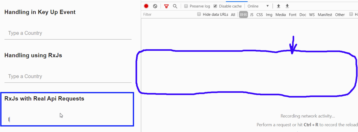 In the above example, we actually make an API request to fetch the countries. You would have noticed, there are a couple of requests that are automatically being canceled. This the power of an RxJs operator which handles the race condition and cancels the ongoing API request when there is a need for a new one.