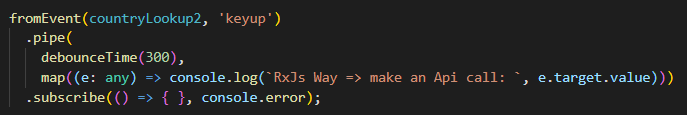In the above example, we are controlling the keyup event streams and logging to console only if the user stopped typing (or) there is a pause during keystrokes for 300 ms.Â